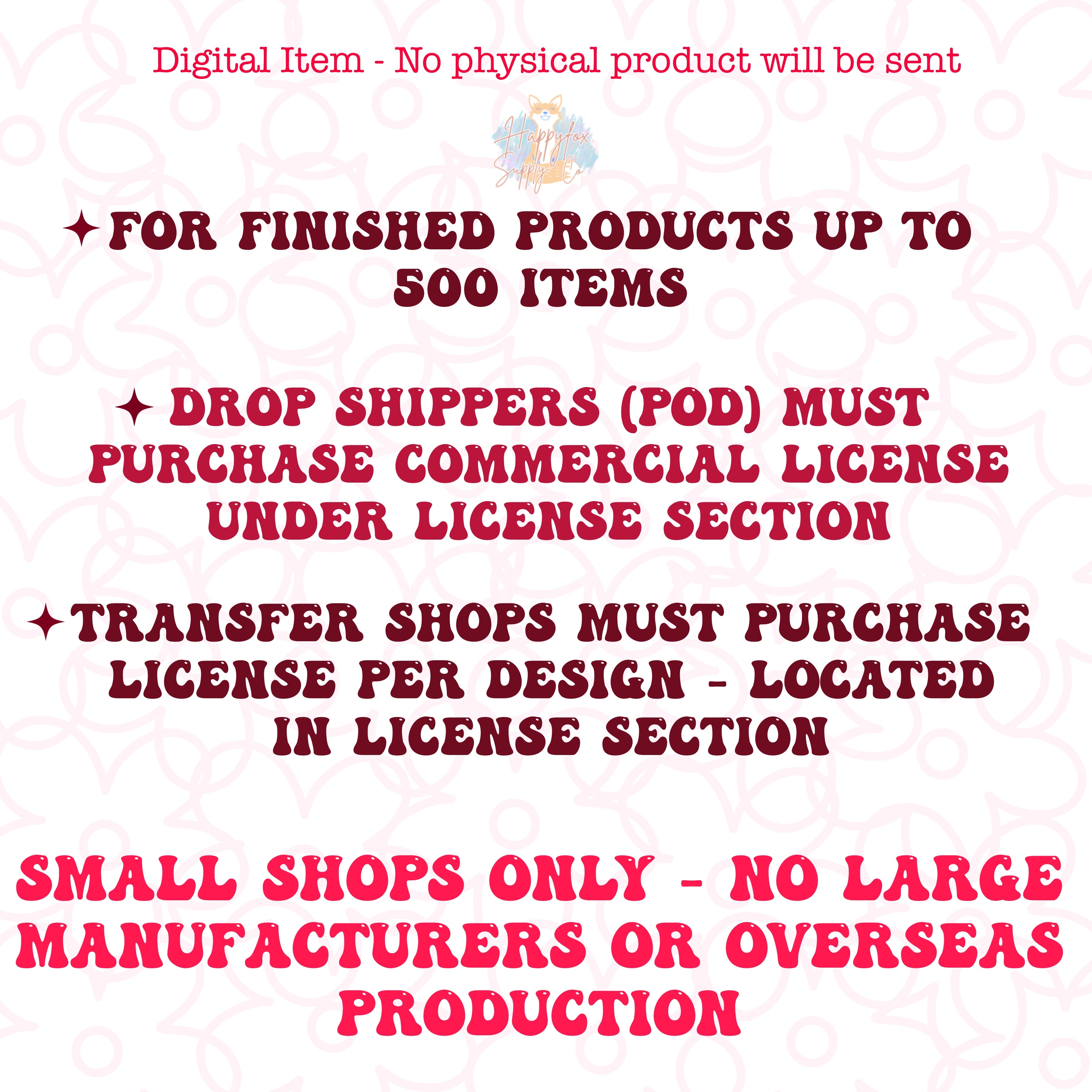 ⭐️For drop shippers or transfer/fabric shops you will need to purchase the correct license