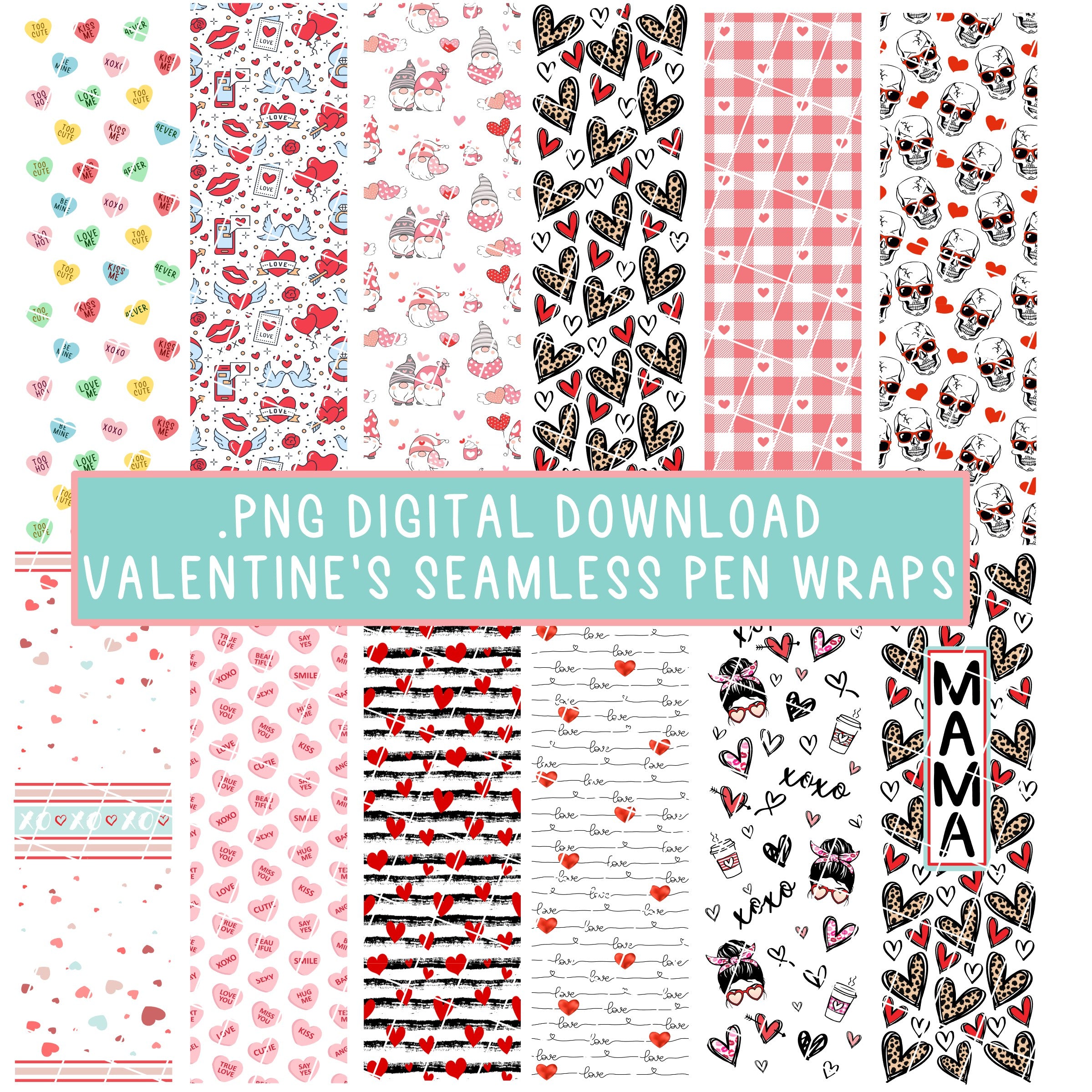 12 Pack Valentine's Day Digital Pen Wrap | High Quality | Seamless | Custom Pen Digital Template | Epoxy Resin Pens | Waterslide | Printable