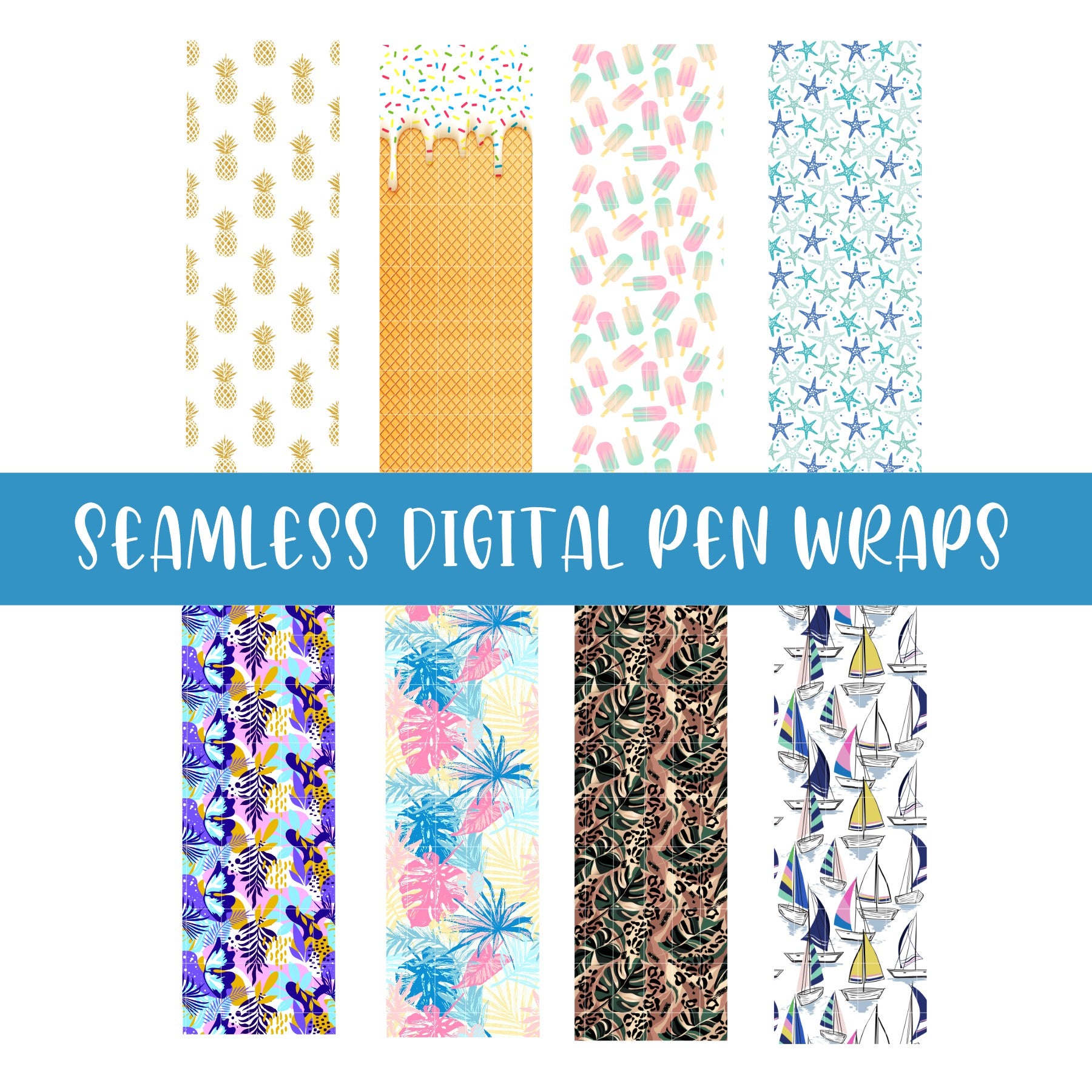 High Quality Seamless Pen Wrap Digital Template Summer Pack Waterslide Wrap Inkjoy Pens Custom Pens Glitter Pens PNG