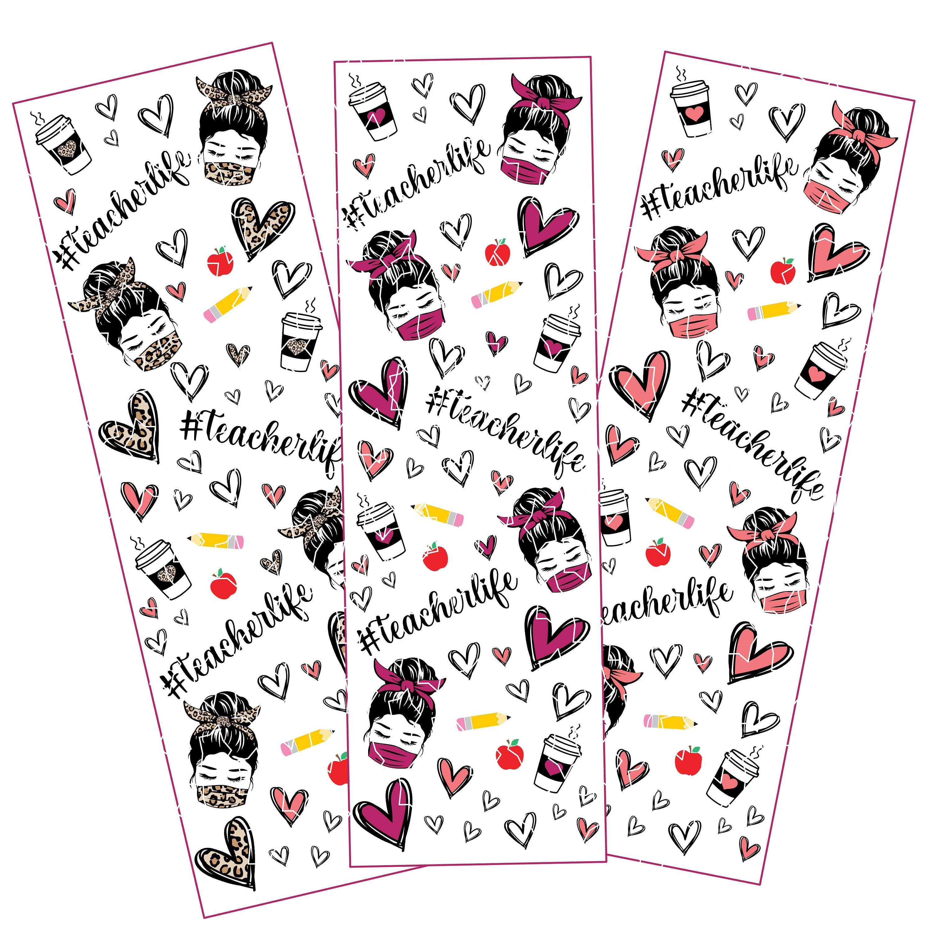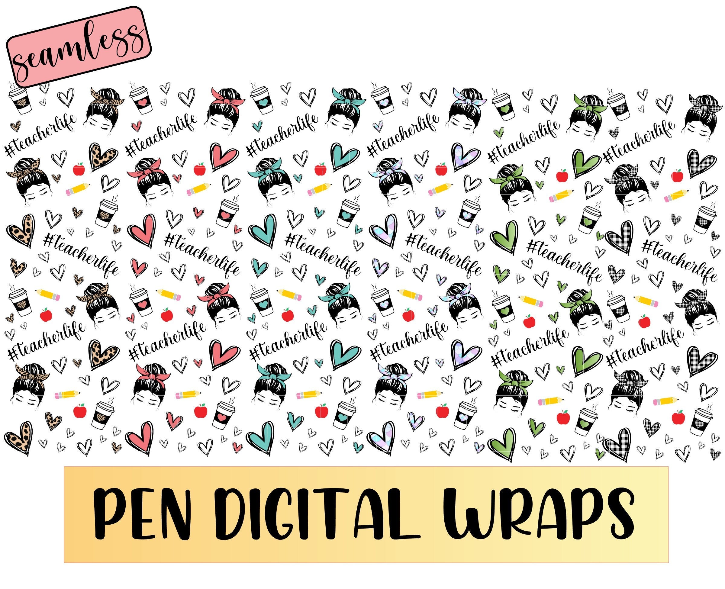 Original Design High Quality Seamless Digital Template 17 Pack Teacher Life Pen Wrap Coffee Leopard Cheetah Sunflower Waterslide Wrap