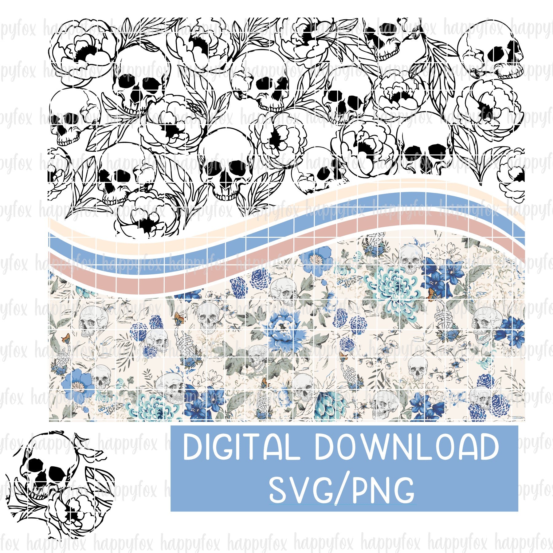 Peony Skulls Swoop Seamless Tumbler Wrap SVG Digital Download