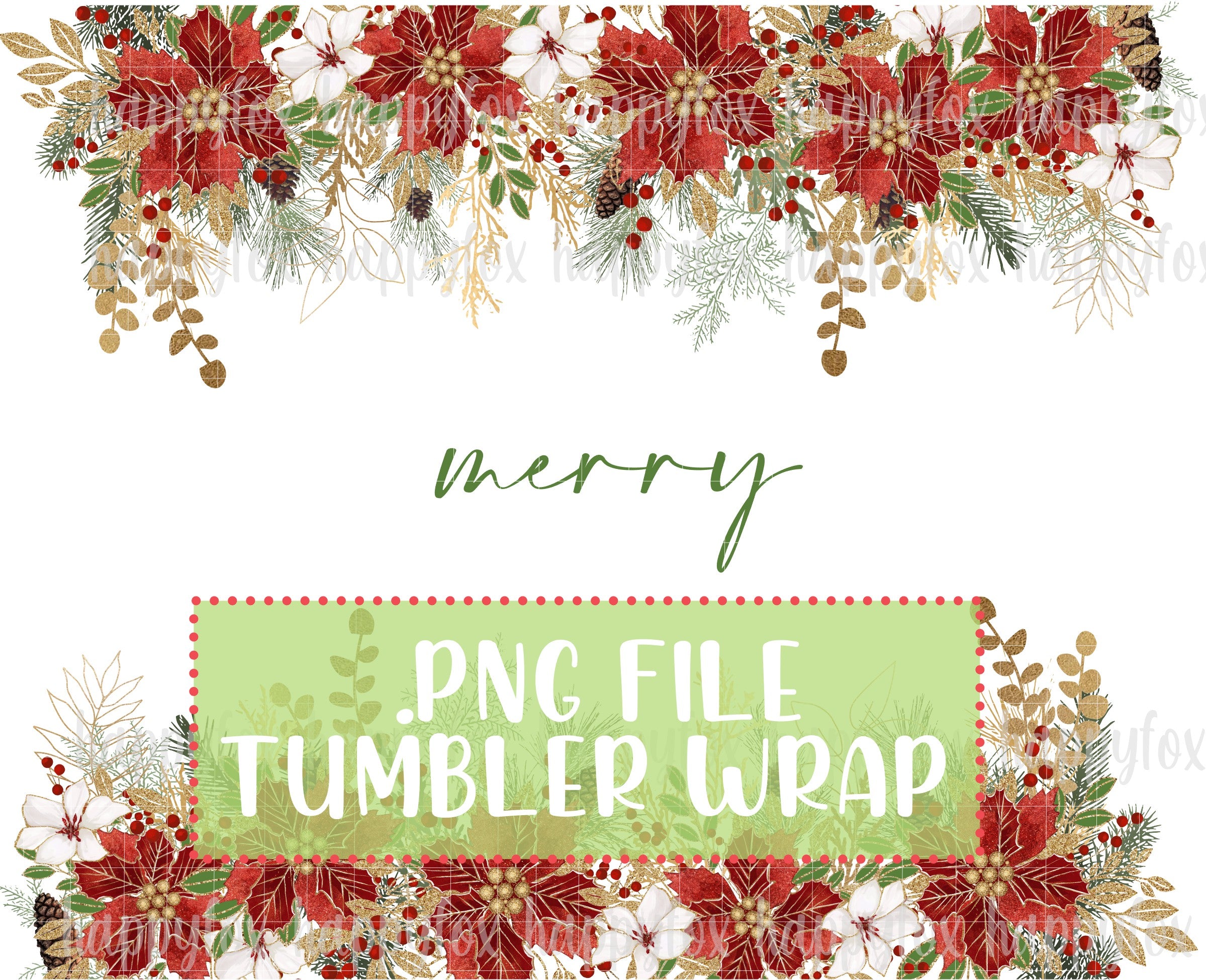 Comes with 3 "merry" colors, red gold and green, plus a bonus "tis the season" .PNG and a blank one (no words just flowers).
