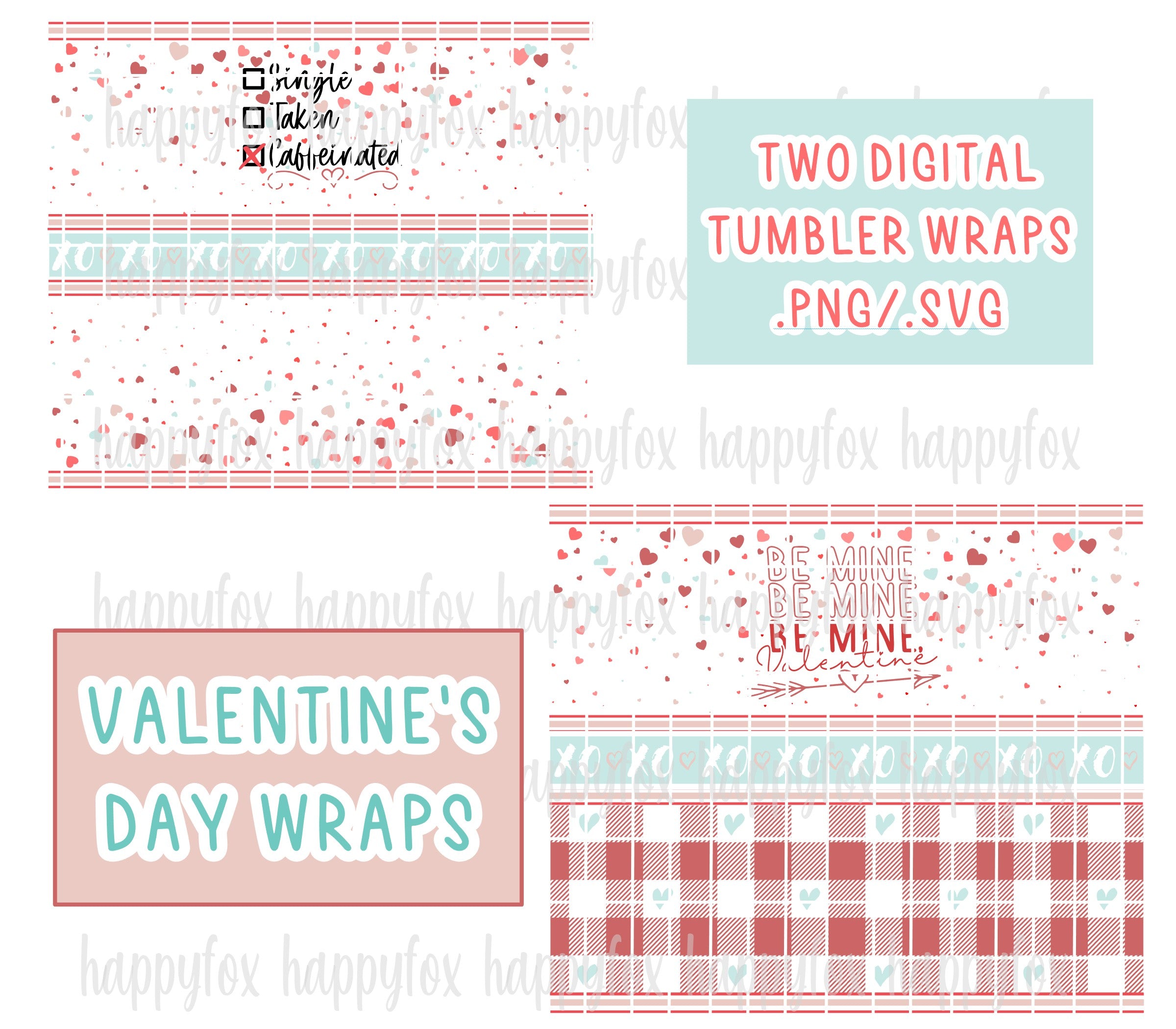Valentine's Day Digital Download .SVG & .PNG Format Be Mine, Valentine | Single Taken Caffeinated | Tumbler Wrap