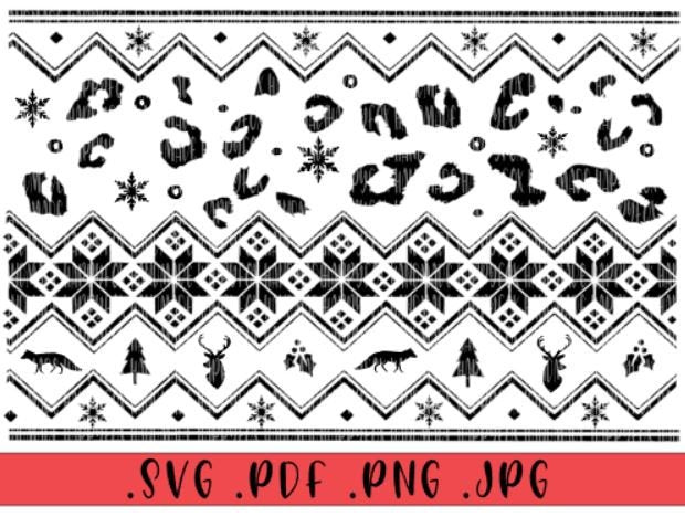 Falling Snow Nordic Winter Pattern Fair Isle Leopard Digital Download .png .svg .pdf .jpg Tumbler Wrap