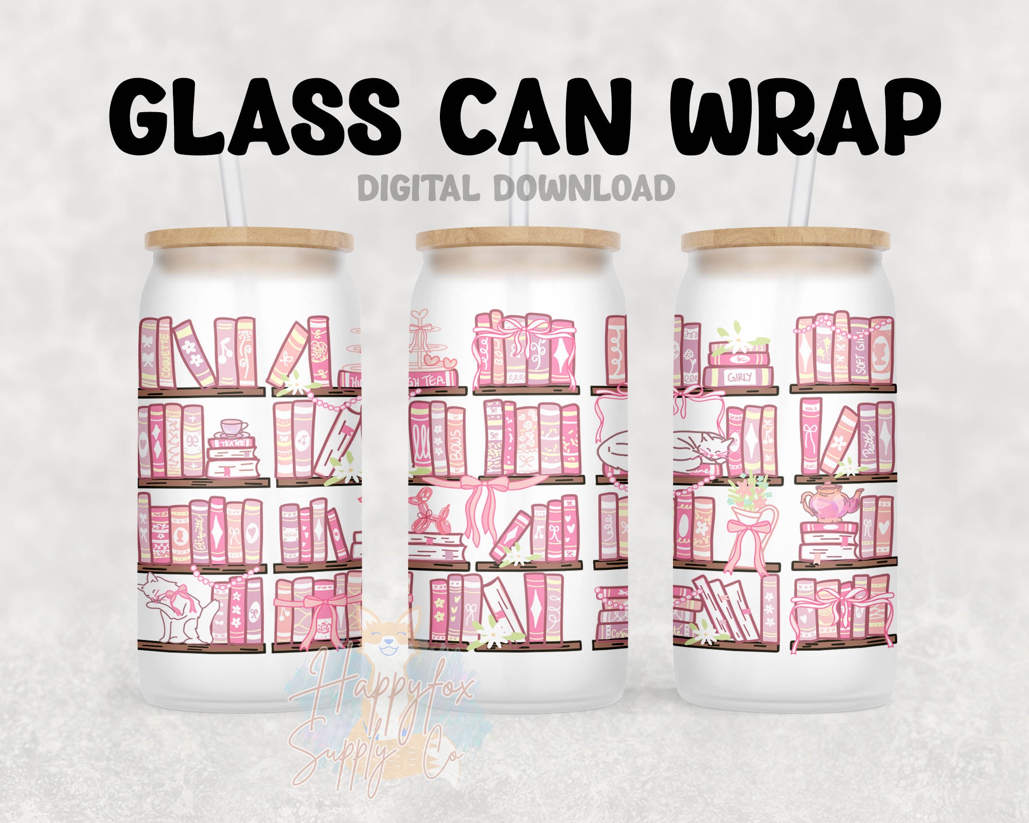 Coquette Bookshelf Digital Download 16oz Glass Can Wrap 300 DPI .PNG