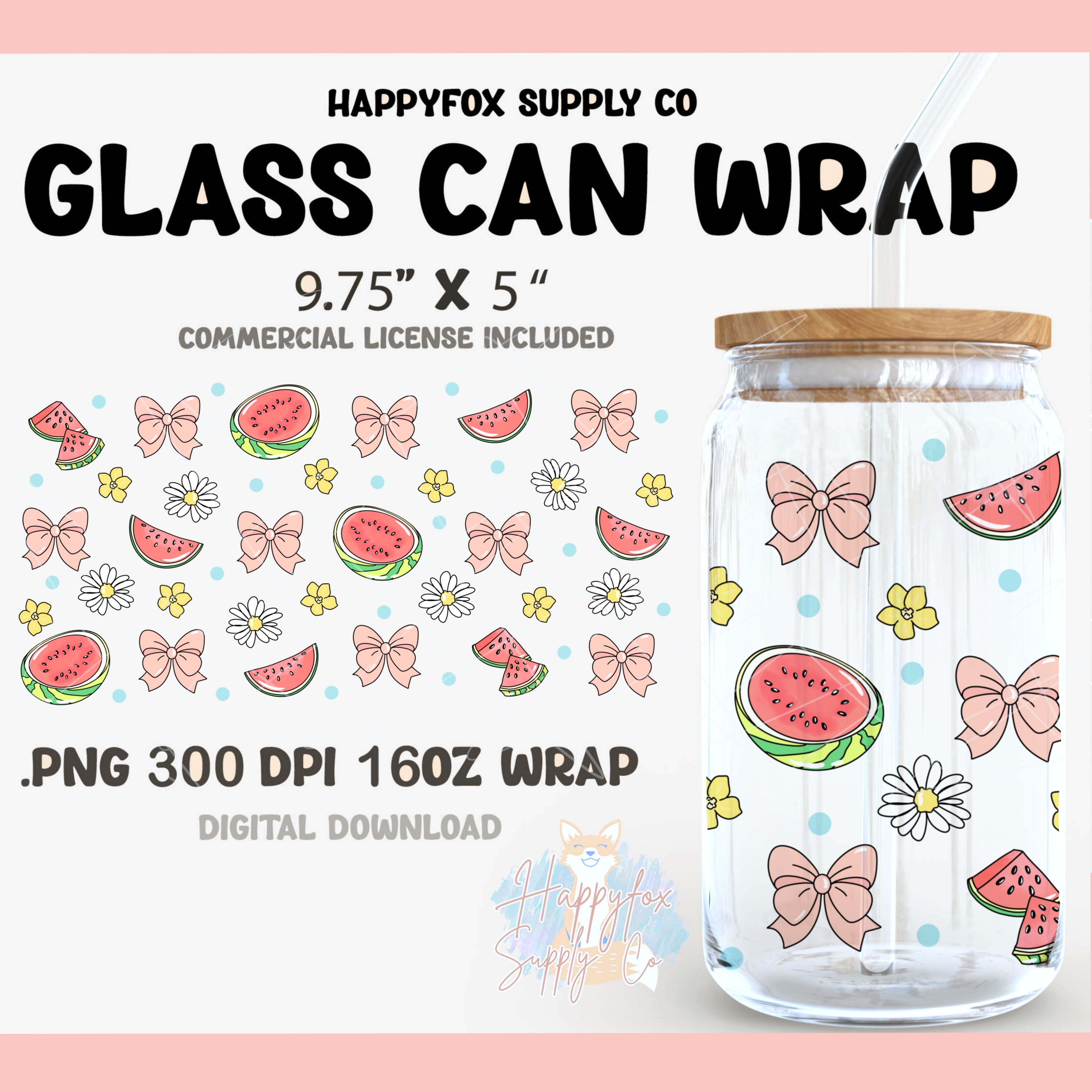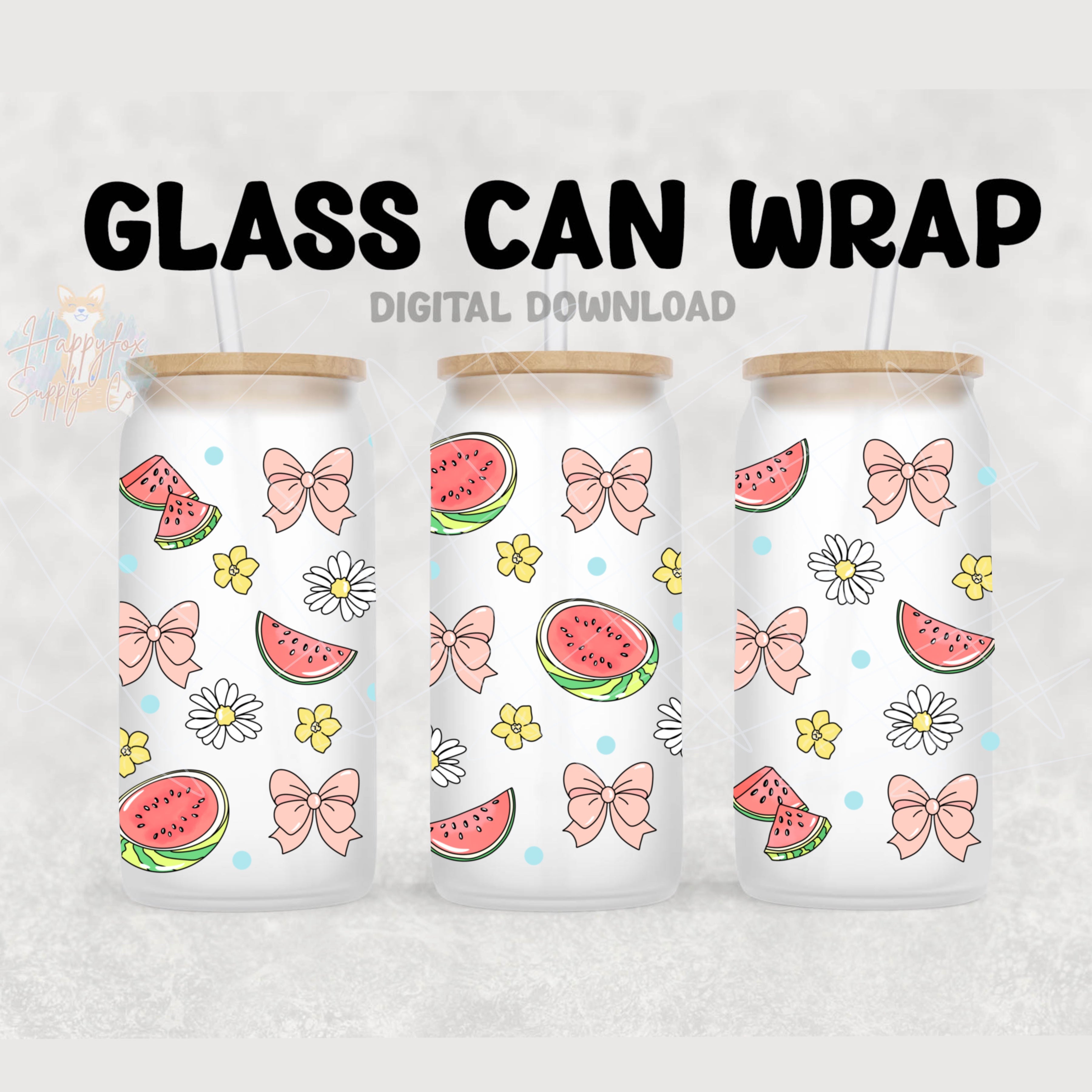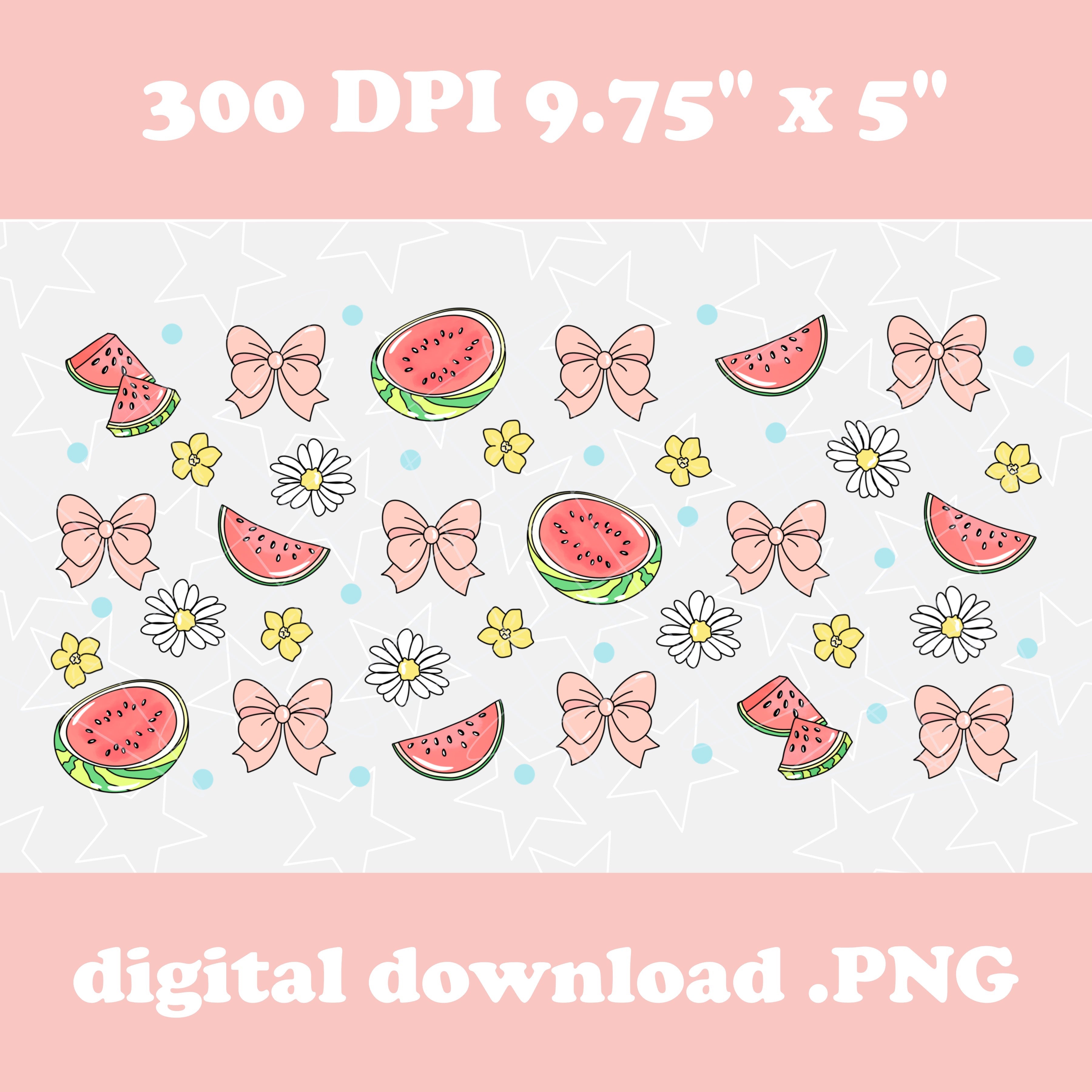 Coquette Summer Watermelon Digital Download 16oz Glass Can Wrap 300 DPI .PNG