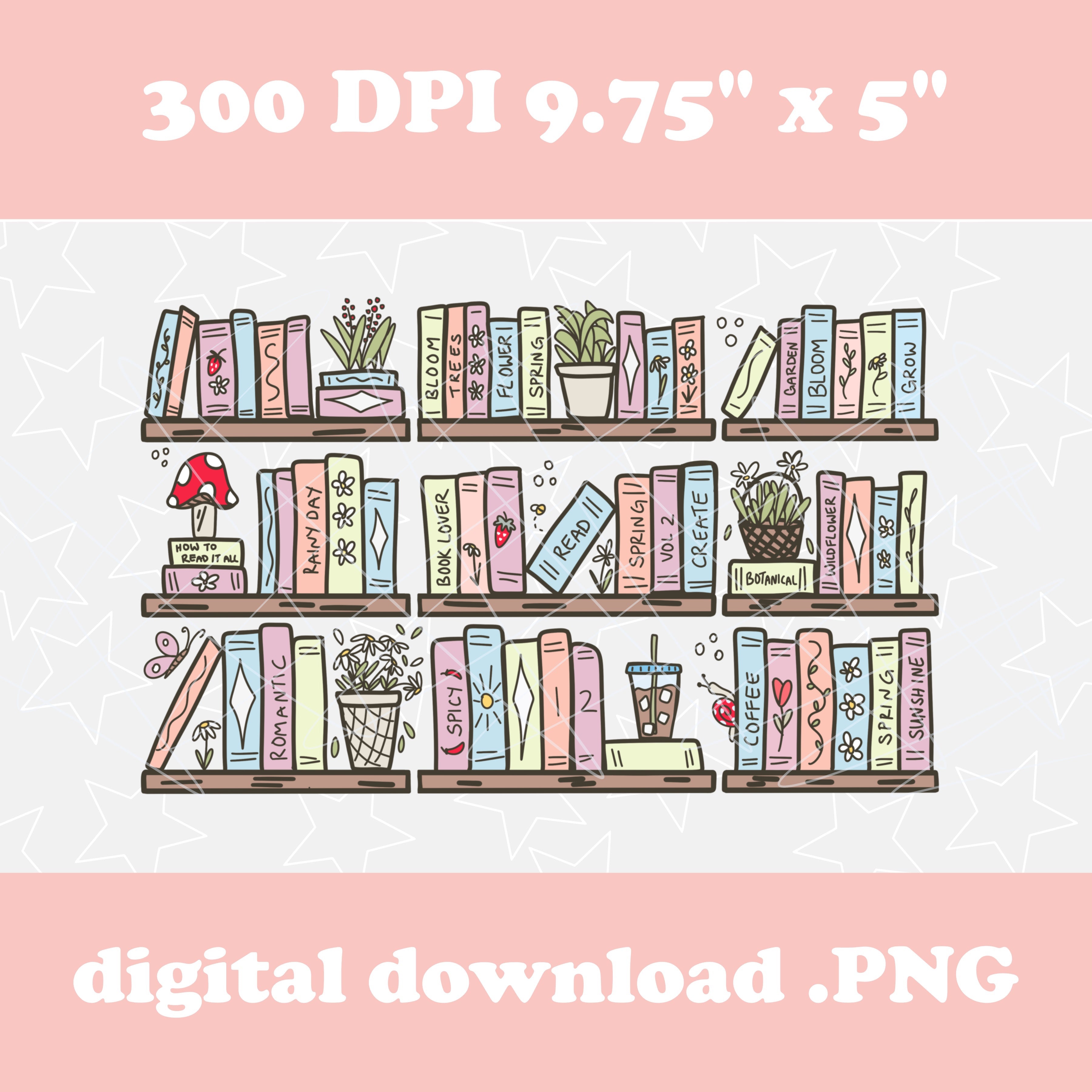 Spring Bookshelf Digital Download 16oz Glass Can Wrap 300 DPI .PNG