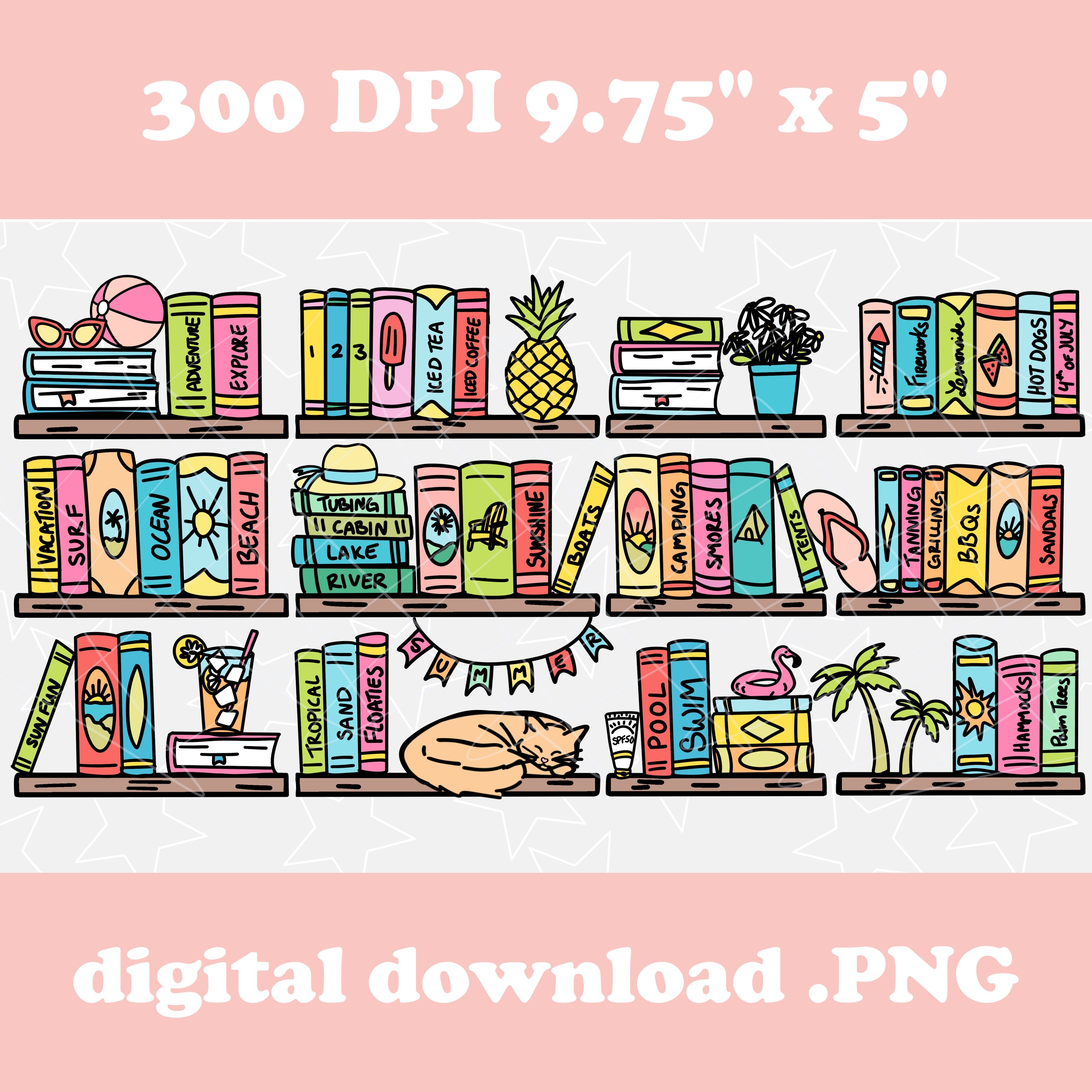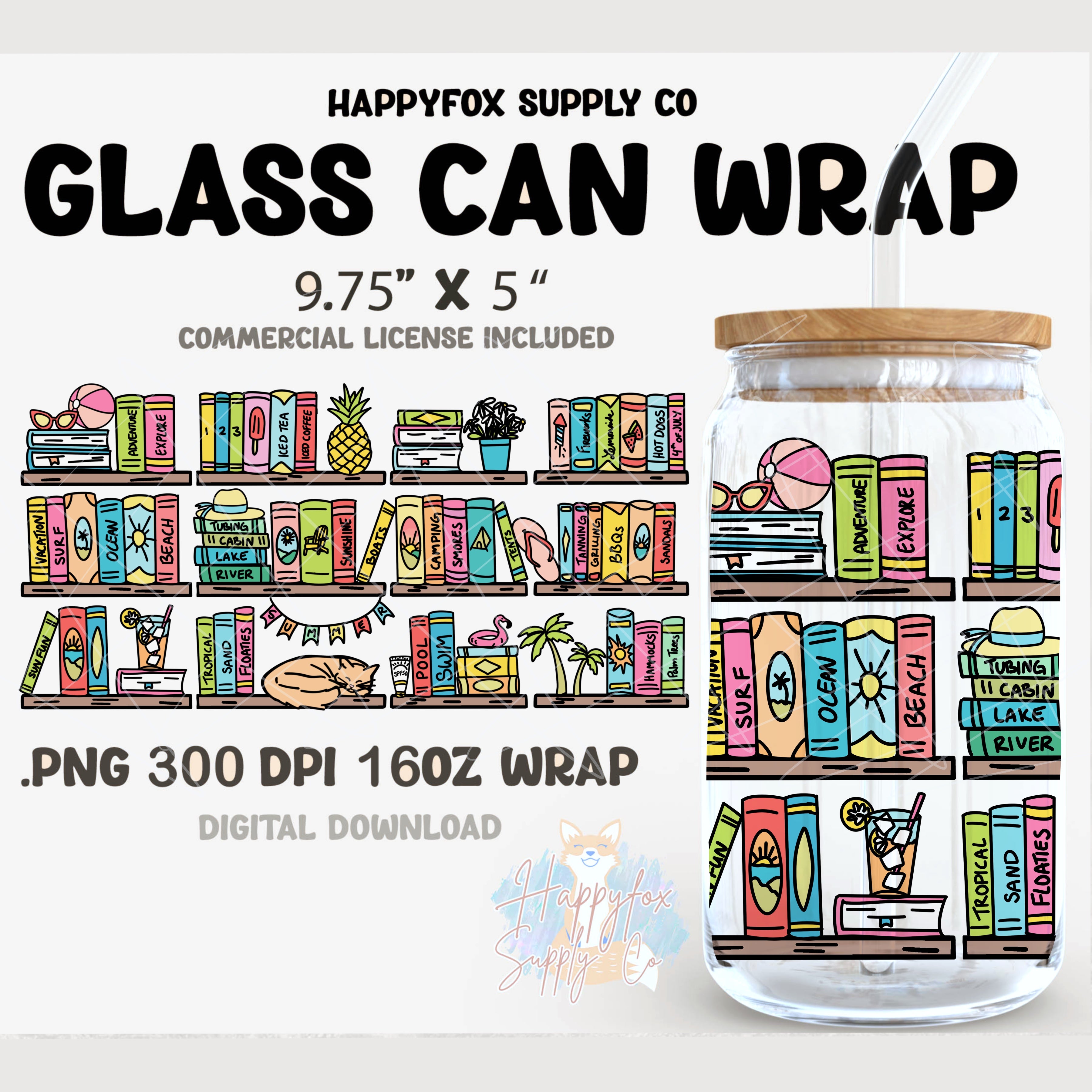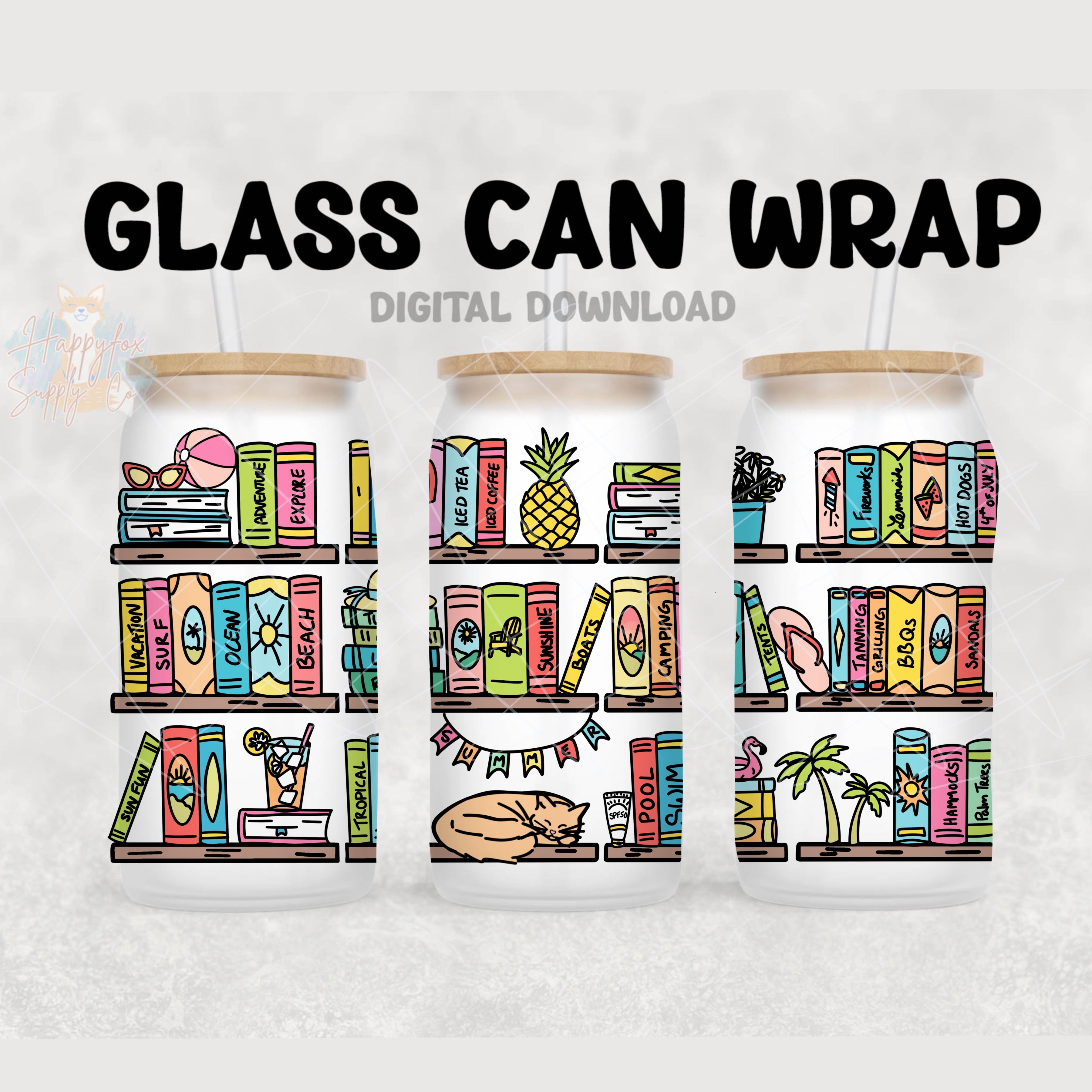 Summer Bookshelf Digital Download 16oz Glass Can Wrap 300 DPI .PNG