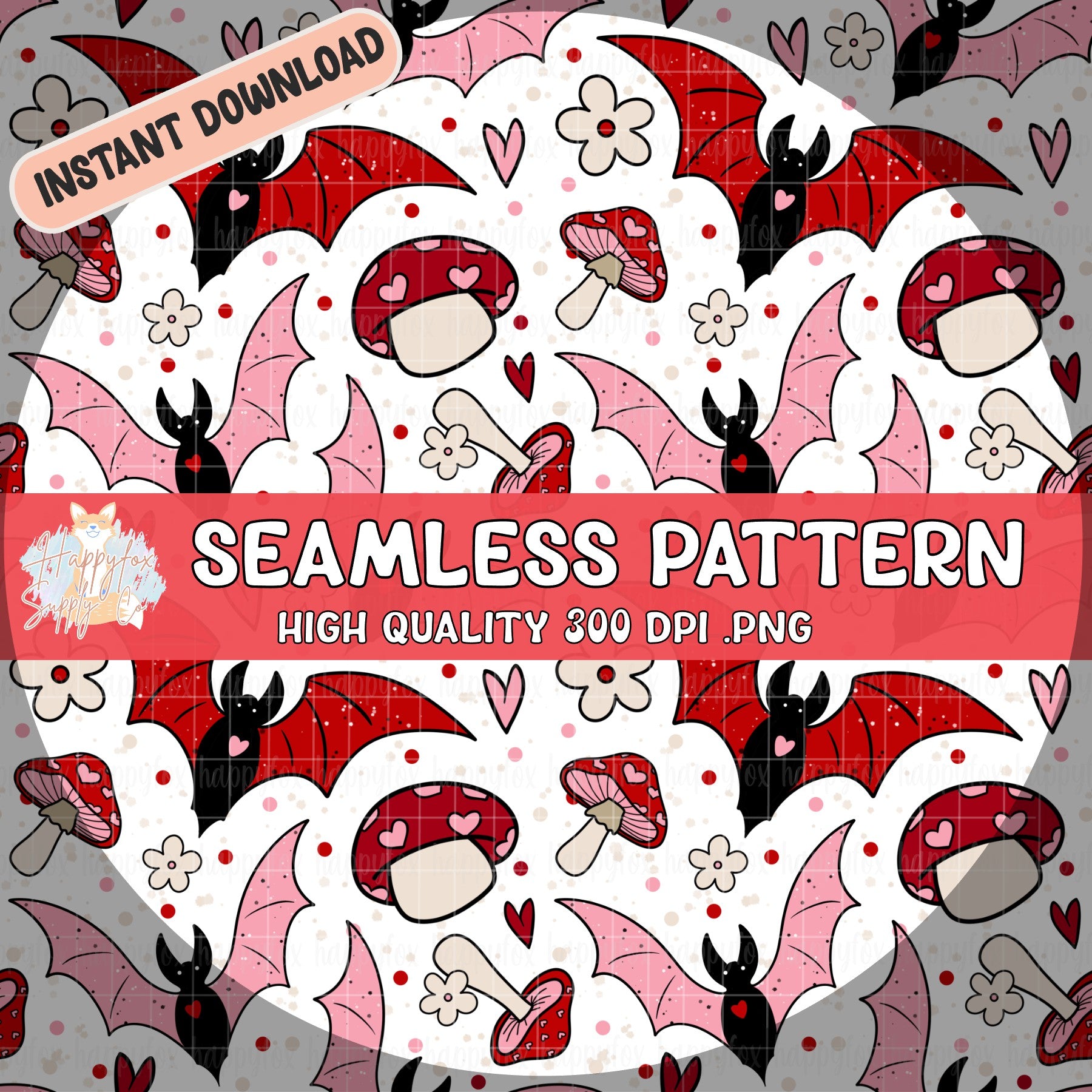 Bats n Mushies High Quality Digital Seamless File | 300 DPI | .PNG Format