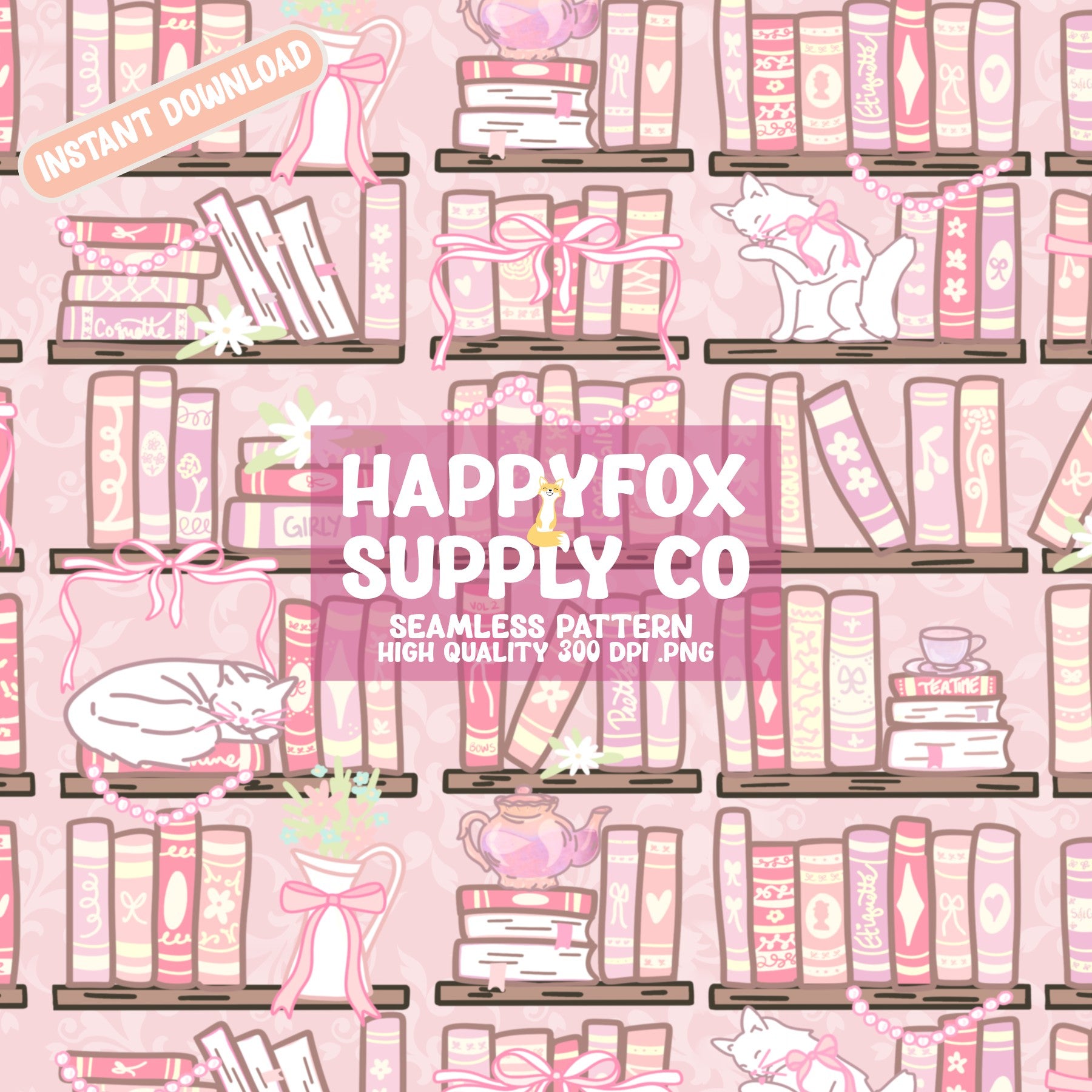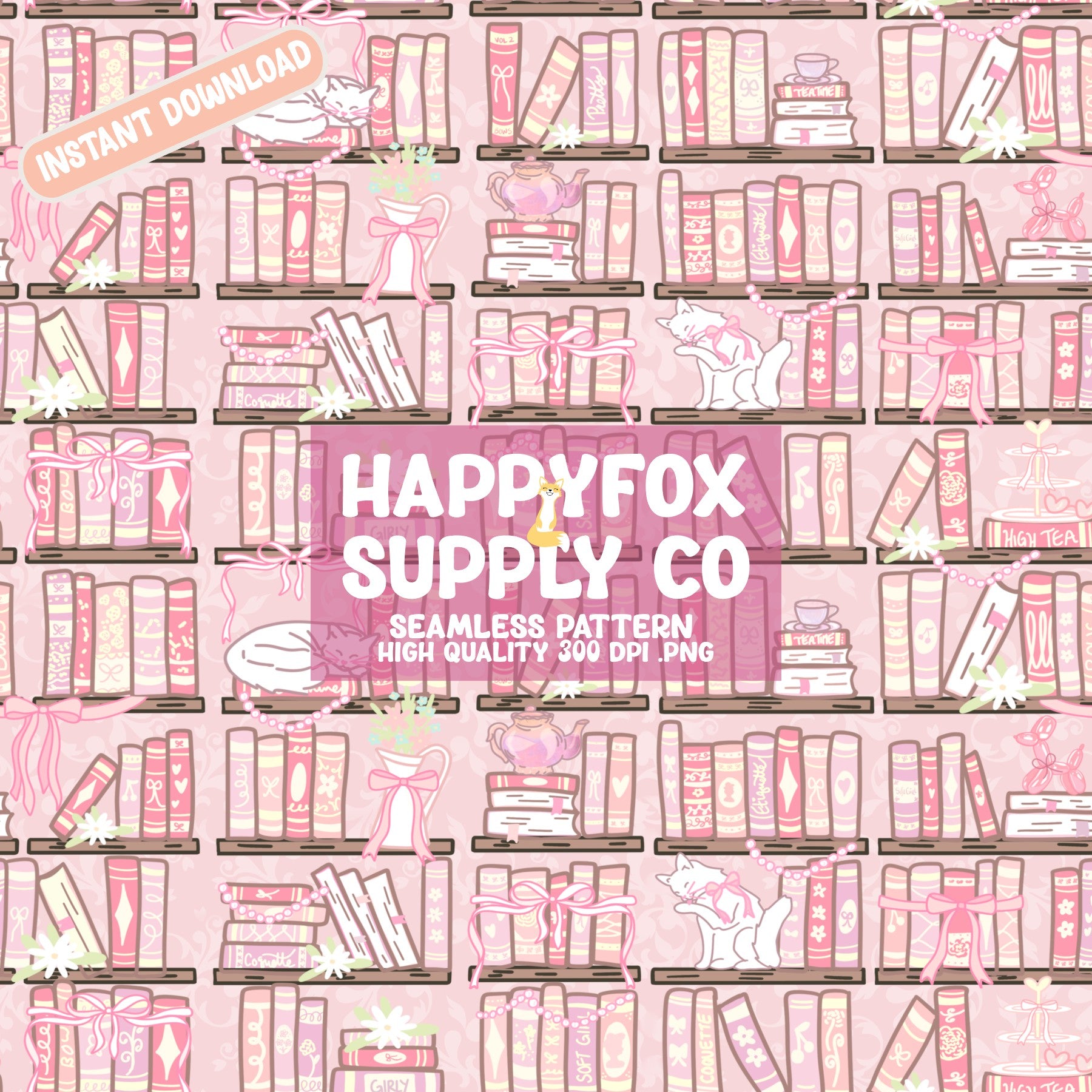 Coquette Bookshelf Pink Digital Seamless File | 300 DPI | .PNG Format