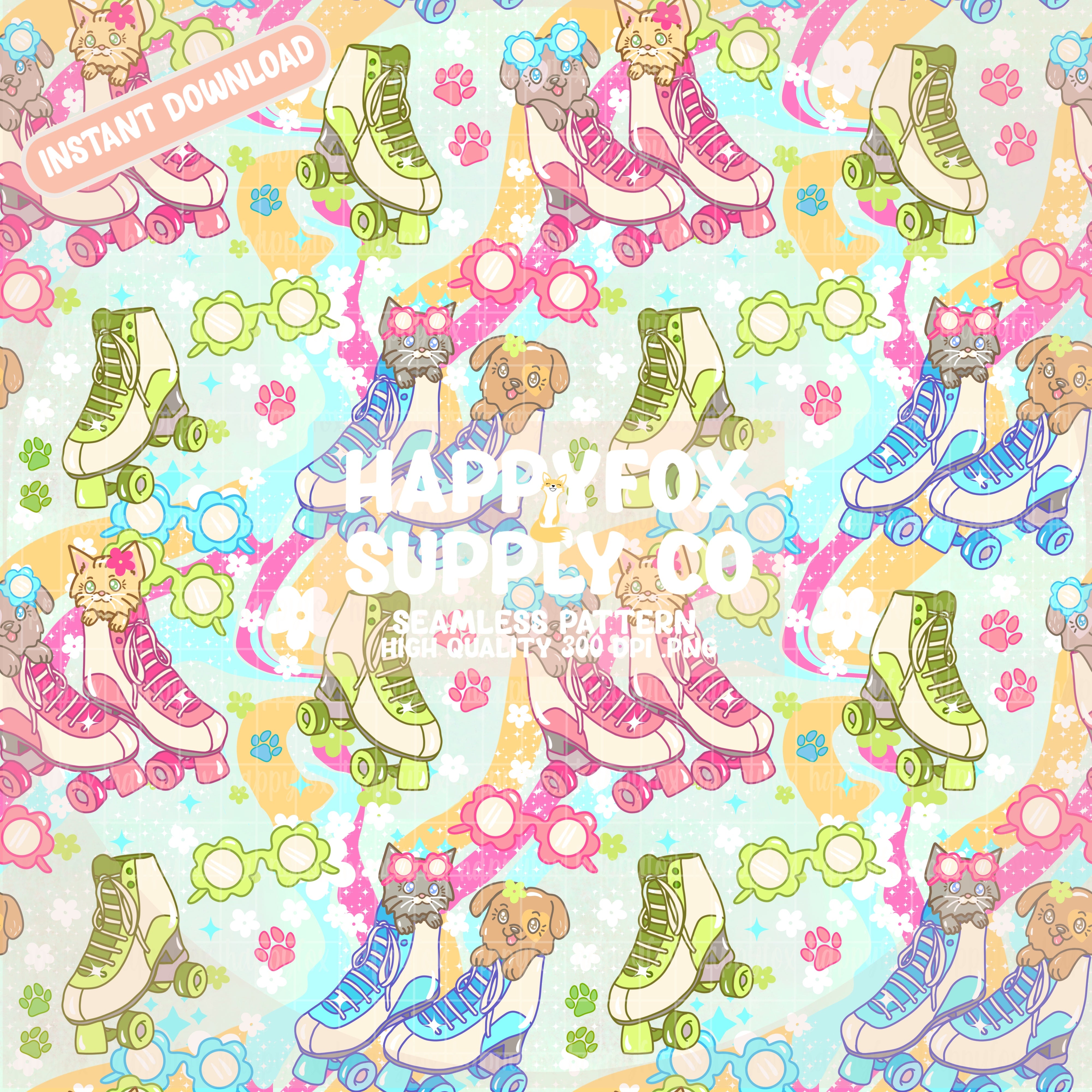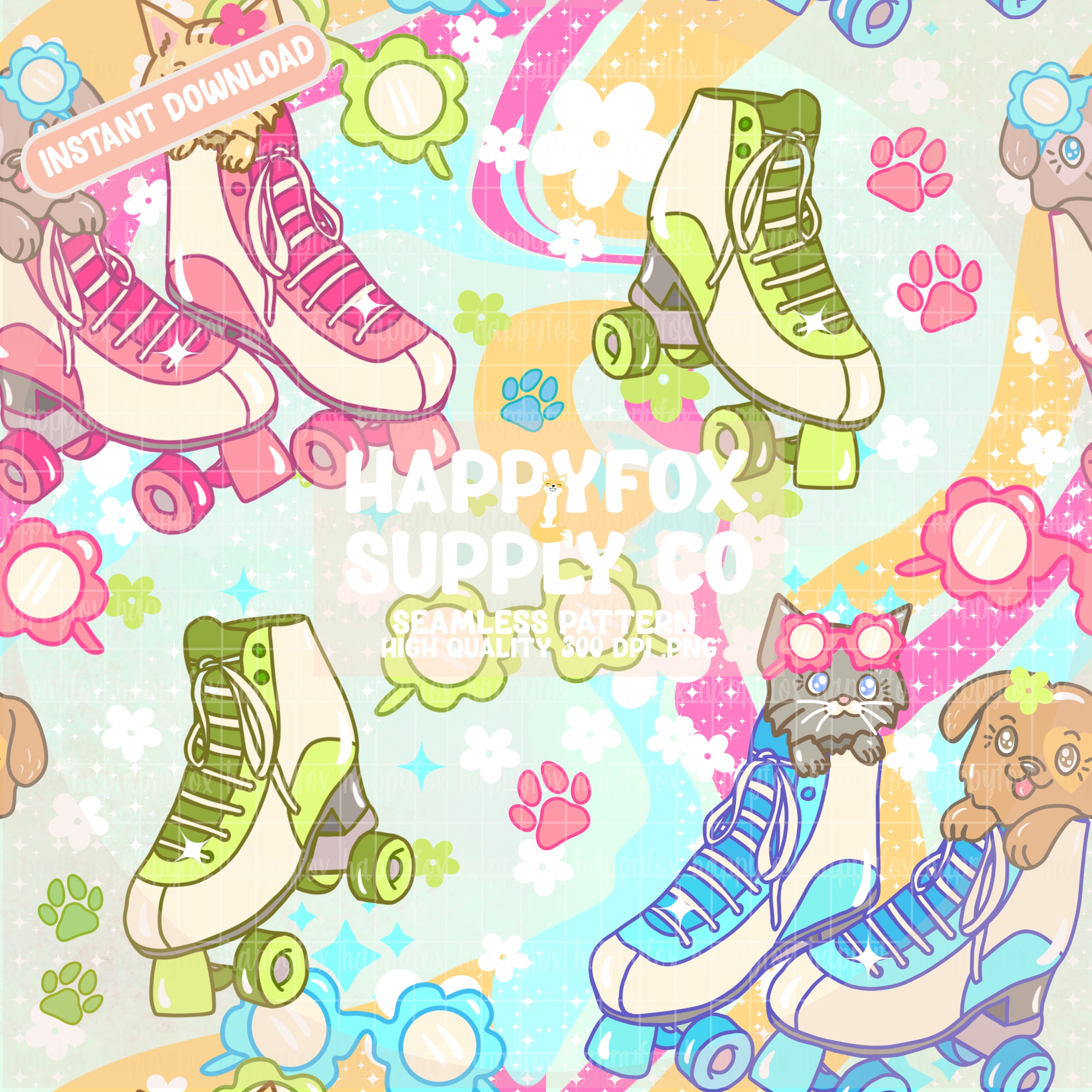 Groovy Rollerskates Digital Seamless File | 300 DPI | .PNG Format
