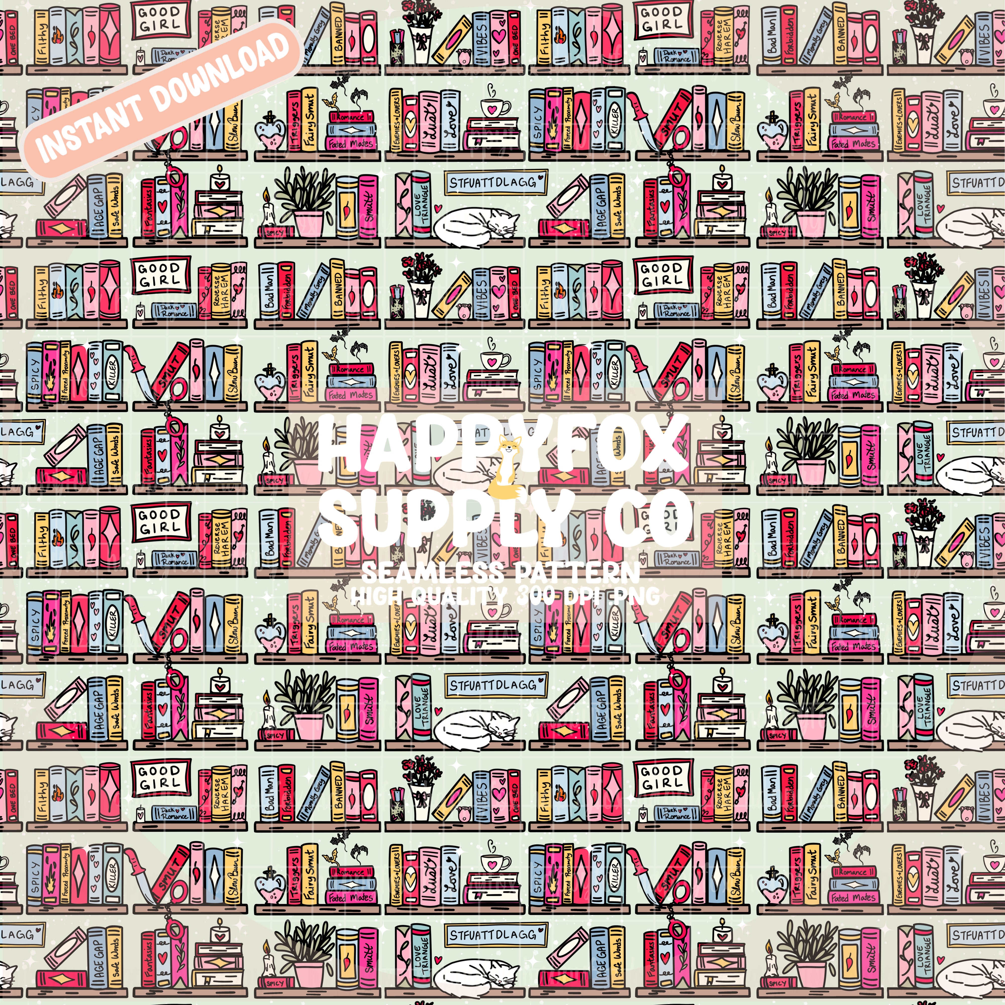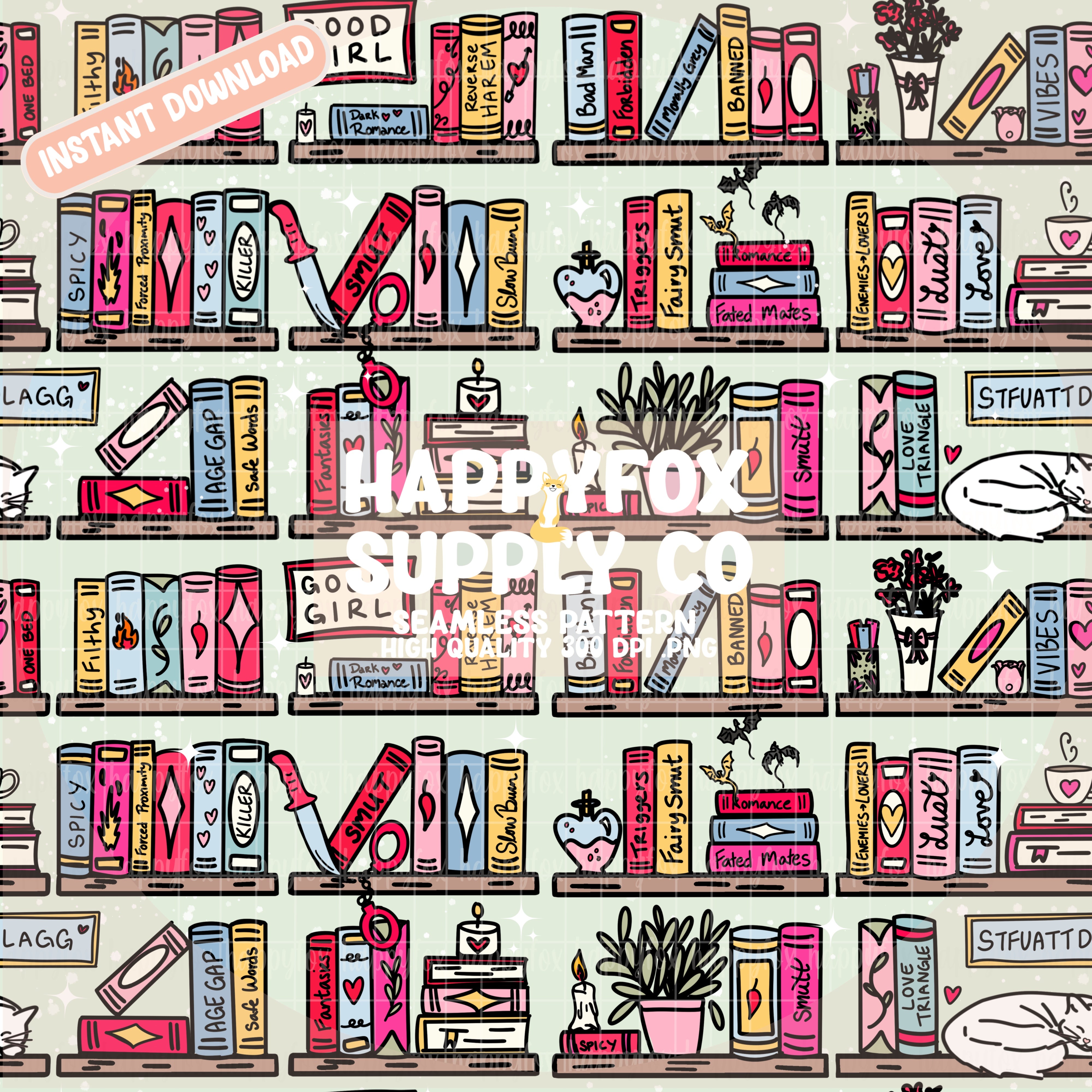 Smut Bookshelf Digital Seamless File | 300 DPI | .PNG Format
