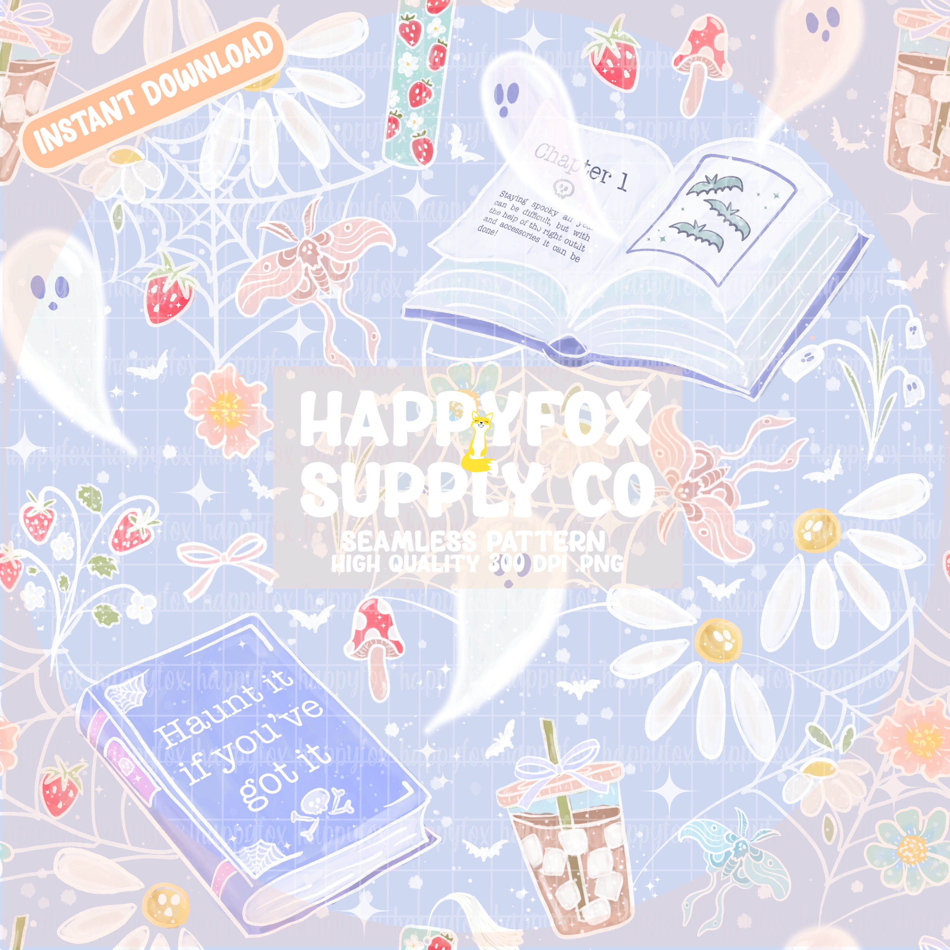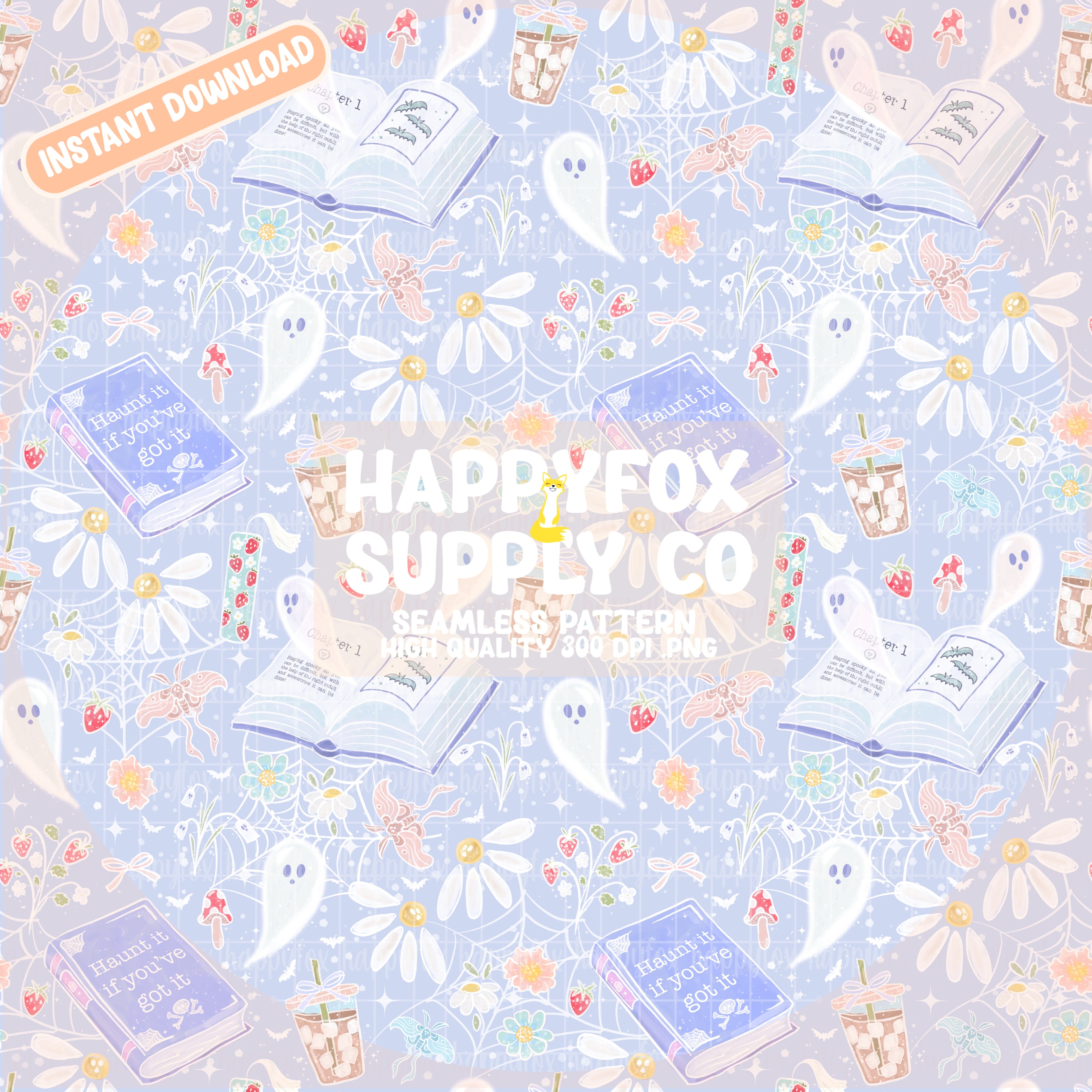 Spooky Spring Books Periwinkle Digital Seamless File | 300 DPI | .PNG Format