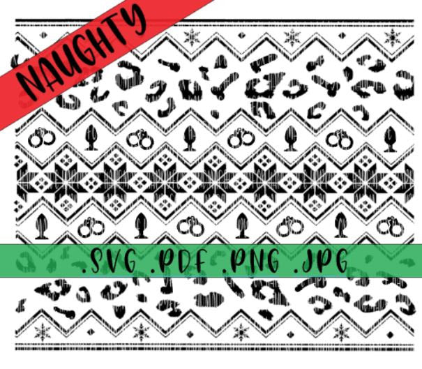NAUGHTY Fair Isle Christmas Sweater Tumbler Wrap Pattern Digital Download SVG/Waterslide/Sublimation .png .svg .pdf .jpg