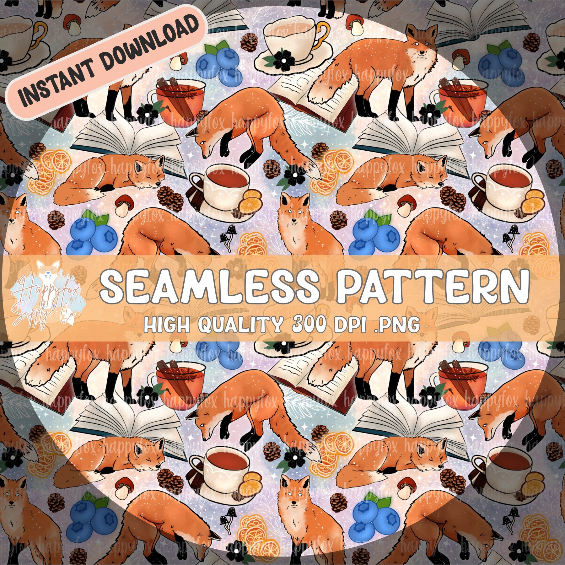 Tea-riffic Foxes High Quality Digital Seamless File | 300 DPI | .PNG Format